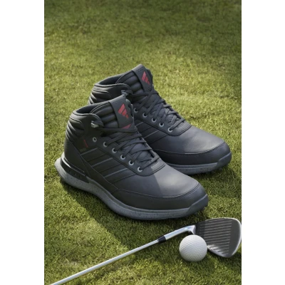 When the forecast calls for rain, step onto the course in these adidas golf shoes and play with confidence. Inspired by classic hightop basketball shoes, these RAIN.RDY shoes keep your feet dry so you can stay focused in wet conditions. Ultralight Lightstrike cushioning delivers fullround comfort while a cleated Adiwear outsole grips wet grass for a solid stance on every swing. Sale | Upper material: synthetics/Lining: textile/Sole: natural rubber/Insole: textile | Sale order at Zalando UK! Size: 5. Color: Core black iron metallic better scarlet. Pattern: plain.