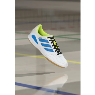 adidas Performance Super SALA Competition III Indoor Football Boots Indoor footwear white/lucid ray blue/solar yellow Sale at Zalando UK | Upper material: imitation leather/ textile/Lining: textile/Sole: abrasionproof rubber/Insole: textile | Sale order at Zalando UK! Size: 11. Color: Footwear white/lucid ray blue/solar yellow. Pattern: plain.
