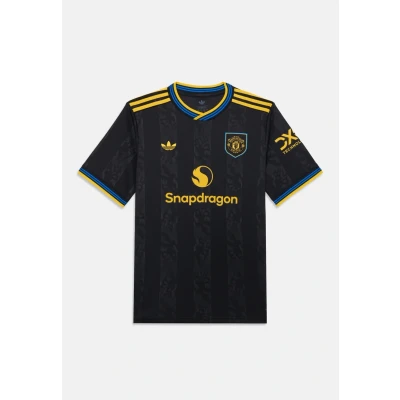 Let your youngster show their pride in the adidas Manchester United Third Shirt 2025/26 Featuring a sleek black colourway for a bold look this shirt is built with moisture-managing AEROREADY to help keep them cool and comfortable Finished with a bright yellow Trefoil and the iconic Manchester United crest it’s ideal for matchdays after school training or everyday wear Product Highlights:- Cut in a regular fit for comfortable wearing - Classic crew neck and short sleeves Composition: 100% polyester Care: Machine washable Football Shirts