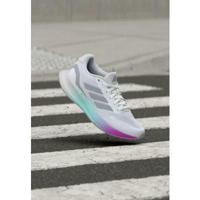 From the track to the treadmill, run toward your goals in these running shoes from adidas. The cushy Cloudfoam midsole feels soft and supportive from the minute you step in. A breathable mesh upper and durable Adiwear outsole make these goto trainers perfect for allday wear. Sale | Upper material: textile/synthetics/Lining: textile/Sole: synthetics/Insole: textile | Sale order at Zalando UK! Size: 9.5. Color: Footwear white/halo silver/coloured/core black.
