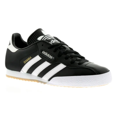 Adidas Originals Samba Super Mens Trainers In Black/WhiteThe Adidas Samba Super Leather Men'S Trainer In Black Is A Retro Classic. These Indoor Football Trainers Feature A Large Trefoil Logo To The Tongue,The Iconic 3 Stripes And Samba Wording To The Side. The Chunky Textured Rubber Bumper And Gum Coloured Sole Highlight The Styles Football Roots.Leather UpperFabric LiningSynthetic SoleMens Adidas Leather Samba Indoor Soccer Trainers Shoes