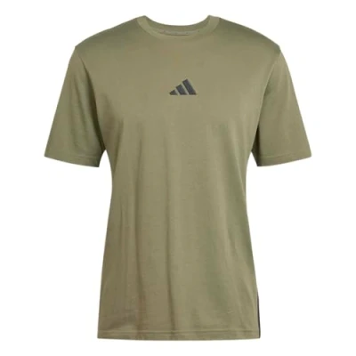 adidas Sportswear Essential Three Stripes Print Tshirt, Men's, Size: Medium, Olive strata/black