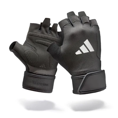 Engineered to safeguard your hands while boosting performance, the Adidas Strength Training Gloves are perfect for all exercise types, from weight lifting to calisthenics, empowering you to push your limits no matter your training method. Made with advanced Aeroready technology, these sweat-wicking gloves are designed to keep you cool and dry during demanding workouts. Additionally, ventilated palm sections enhance airflow, and thumb-towelling material allows for easy sweat removal.. The ergonomically padded suedette palm not only protects your hands from the rigours of training but also improves grip and durability. Full palm coverage shields against calluses and blisters, while the soft inner fabric lining provides a comfortable, hand-friendly experience.. Equipped with thick wrist wraps for added lifting support, these gloves enhance wrist stability, increase grip strength, and reduce fatigue. The robust hook and loop fastening ensures a secure fit, while the durably sewn finger pulls make removal quick and effortless.. Elevate your performance with Adidas Strength Training Gloves and transform your training sessions like never before.