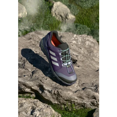 Let the adventures begin. These adidas Terrex hiking shoes are ready to tackle trails and explore the mountains. From a waterproof, breathable GORETEX membrane to keep feet dry to the bestinclass grip of a Continental™ Rubber outsole, they balance comfort, grip and durability for kids who want to explore high and low. Speed lacing lets kids adjust the fit and feel on the go, and a reinforced upper with a moulded toe cap holds up to rugged terrain. A cushioned midsole adapts to uneven ground, and an Adifit insole measuring tool helps dial in the fit. By choosing recycled, we are able to reuse materials that have already been created, which helps to reduce waste. Renewable materials choices will help us to remove our reliance on finite resources. Our products made with a blend of recycled and renewable materials feature at least 20% total of these materials. Sale | Upper material: textile/synthetics/Lining: textile/Sole: synthetics/Insole: textile | Sale order at Zalando UK! Size: 4. Color: Aurora plum/silver/coloured metallic/semi flash aqua. Pattern: striped. Age group: Kids.