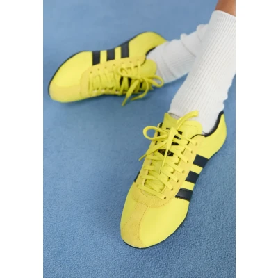 ZalandoSlip into retro style with the adidas Tokyo shoes. The lightweight nylon upper has a slim, lowprofile build that's vintage and modern at the same time. Underneath, a rubber outsole provides great grip so you can stroll with confidence. Lace up these trainers, and move seamlessly from work to weekend and every casual occasion in between. Sale | Upper material: synthetics/textile/Lining: textile/Sole: synthetics/Insole: textile | Sale order at Zalando UK! Size: 4.5. Color: Pure sulfur/dark brown/gold metallic. Pattern: plain.