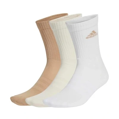 adidas Unisex Cushioned Crew Socks 3 Pairs, White/Wonder White/Warm Sandstone, 2.5 4