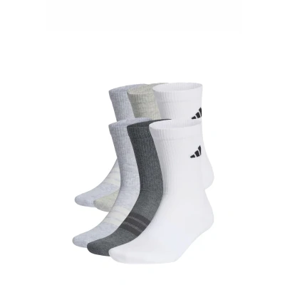 adidas Unisex CUSHIONED CREW SOCKS 6 PAIR PACK, white/light grey heather/medium heather/dark heather, 6.5 8
