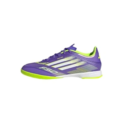 adidas Unisex F50 League Indoor Football Boots, Purple Rush/Cloud White/Lucid Lemon, 10 UK