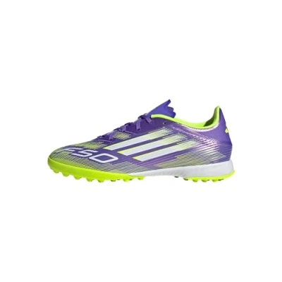adidas Unisex F50 League Turf Football Boots, Purple Rush/Cloud White/Lucid Lemon, 5.5 UK