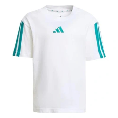 adidas Unisex Kids Essentials 3 Stripes Sleeve T Shirt, White/Pure Teal, 6 7 Years