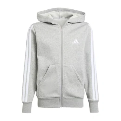 adidas Unisex Kids ESSENTIALS FULL ZIP HOODIE, medium grey heather/white, 9 10 Years