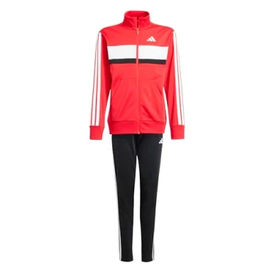 adidas Unisex Kids SEASONAL ESSENTIALS TIBERIO 3 STRIPES TRICOT TRACKSUIT, black/glow blue/blue fusion/white, 11 12 Years
