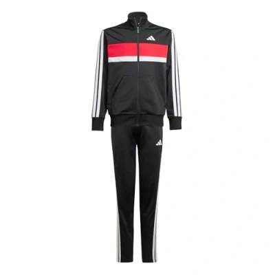 adidas Unisex Kids SEASONAL ESSENTIALS TIBERIO 3 STRIPES TRICOT TRACKSUIT, black/white/pure ruby, 4 5 Years