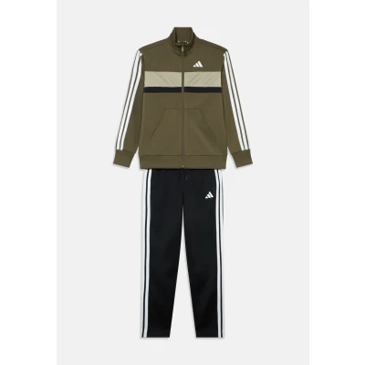 adidas Unisex Kids SEASONAL ESSENTIALS TIBERIO 3 STRIPES TRICOT TRACKSUIT, olive strata/white, 11 12 Years