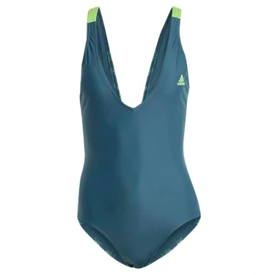 adidas Women's 3 Stripes Swimsuit, Arctic Night/Lucid Lime, 30"