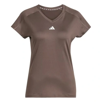 adidas Women's AEROREADY Train Essentials Minimal Branding V Neck Tee, Earth strata/White, S