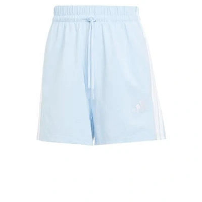 adidas Women's Essentials 3 Stripes Cotton Shorts, Glow Blue/White