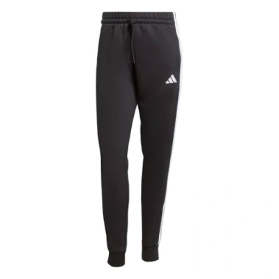 adidas Women's Essentials 3 Stripes Fleece Slim Pants, Black/White, L