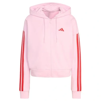 adidas Women's ESSENTIALS 3 STRIPES FRENCH TERRY FULL ZIP HOODIE, clear pink/pure ruby, XS