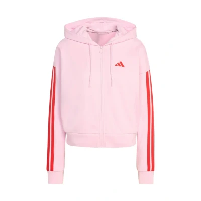 adidas Women's ESSENTIALS 3 STRIPES FRENCH TERRY FULL ZIP HOODIE, clear pink/pure ruby, XXS