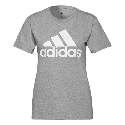 adidas Women's Essentials Logo Tee, Medium Grey Heather/White, XS