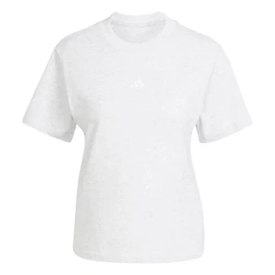adidas Women's Essentials Small Logo Cotton T Shirt, Light Grey Heather/White, XXS