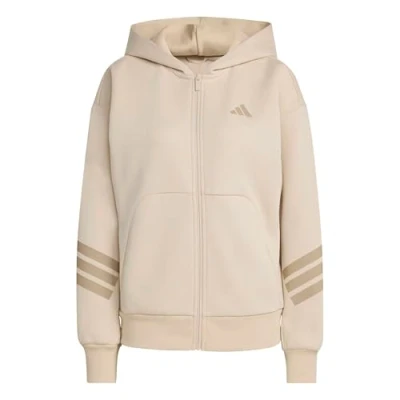 adidas Women's FUTURE ICONS THREE STRIPES FULL ZIP HOODIE, Crystal Linen, M