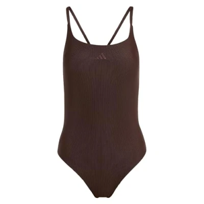 adidas Women's ICONISEA Ribbed Padded Thin Straps Swimsuit, Aurora Coffee, 34