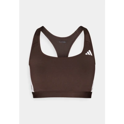 adidas Women's Optime Essentials Workout 3 Stripes Medium Support Bra, Aurora Coffee Met./White, S