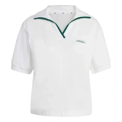 adidas Women's Seasonal Essentials Colorpop Polo with Embroidered Graphic, White/Collegiate Green, XXS