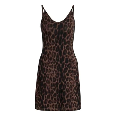 adidas Women's Seasonal Essentials Leopard Print Mini Dress with 3 Stripes, Multicolor/Earth strata, XS