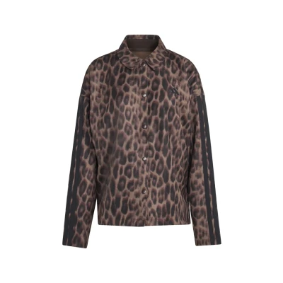 adidas Women's Seasonal Essentials Leopard Print Woven Overshirt with 3 Stripes, MULTICOLOR/earth strata, XXL