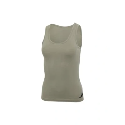 adidas Women's Tank Top Sport Active Essentials Cotton 3 Stripes Shirts, Silver Pebble_4a0690, L