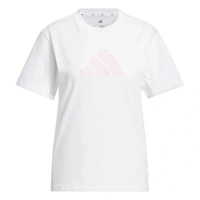 adidas Women's Textured Gingham Big Logo Graphic T Shirt, White, L