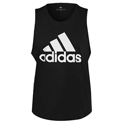 adidas Women's Train Essentials Big Performance Logo Training Tank Top, Black/White, XXL
