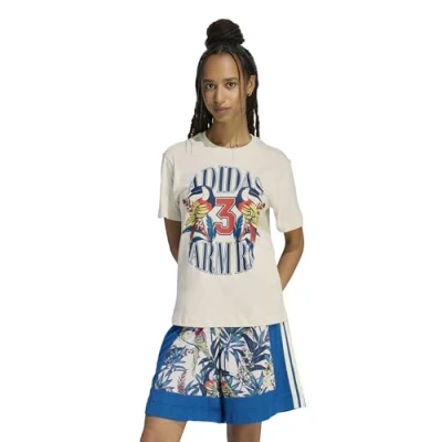 adidas Women's x Farm Rio Graphic T Shirt, Talc/Dark Marine, M