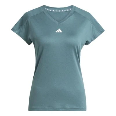 adidas Women's AEROREADY Train Essentials Minimal Branding V Neck Tee, Preloved Teal/White, XXS