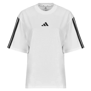 adidas Women's Essentials 3 Stripes Boyfriend T Shirt, White/Black, XL