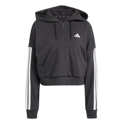 adidas Women's ESSENTIALS 3 STRIPES FRENCH TERRY QUARTER ZIP HOODIE, black/white, XXL