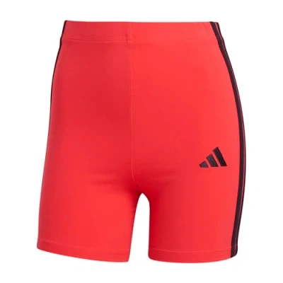 adidas Women's ESSENTIALS 3 STRIPES HIGH WAISTED BIKER SHORTS, pure ruby/black, XS