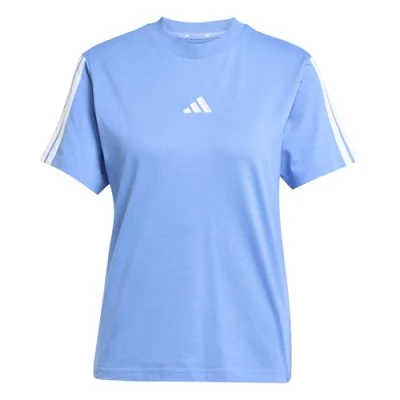 adidas Women's Essentials 3 Stripes Sleeve Cotton T Shirt, Blue Fusion/White, XS