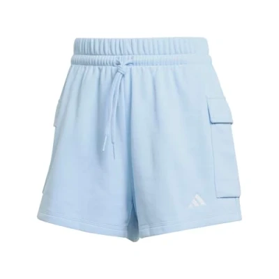 adidas Women's Essentials Small Logo French Terry Cargo Shorts, Glow Blue/White, S