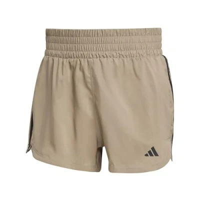 adidas Women's Pacer Training 3 Stripes Woven High Rise Shorts, Chalky Brown/Black, XS 5 inch