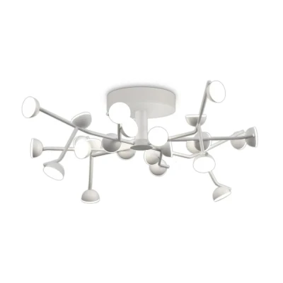 An anarchic distribution of light points structured to mimic DNA strands in an artistic and visually balanced way, this collection offers a comprehensive selection of lighting solutions to add character to your room setting. The round pendants are available in two sizes, along with a linear pendant option, this includes a table lamp, floor lamp and four different wall lamps. Each framework is coated in white epoxy to perfectly complement the warm light emitted from the 3000K LED's. In an ever changing market in which LED lighting is becoming more prominent and in high demand, the LED heads are individually diffused providing the possibility to change the integral LED's at the point of light source, if this becomes necessary in the future. This feature offers the consumer added comfort and security knowing they are able to self maintain their LED product for years to come.