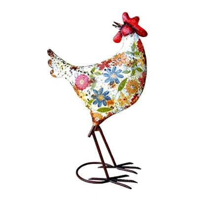 F&G Supplies Cream Hen Chicken Sculpture Garden Ornament in pretty painted metal...