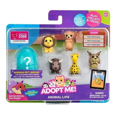 Hidden Pet, To Discover One Of Three Mystery Pets Inside, Remove The Wrapping And Immerse The Egg In Water Animal Life Pets, 6 Adopt Me Pets To Care For Ranging In Rarity From Common To Legendary Exclusive Virtual Code, Redeem Your Adopt Me Virtual Item Code Online Task Board, Scratch Off The 3 Tasks On The Board To Reveal Your Tasks, Same As In-Game More To Collect, This Multipack Consists Of 6 Animal Life Pets To Build Your Adopt Me Collection, Manufacturer: Jazwares