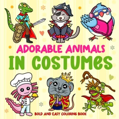 Adorable Animals in Costumes: Bold and Easy Coloring Book: Featuring 35 Playful with Silly Costumes designs for Adults Kids.