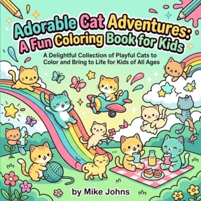 Adorable Cat Adventures: A Fun Coloring Book for Kids: Playful Kitten Illustrations Children Ages 4 10 with Easy to Color Designs