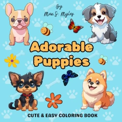 Adorable Puppies: Cute And Easy Coloring Book for Adults Kids, Bold Simple Designs Relaxation Stress Relief Featuring Dogs, Flowers, Butterflies Many More