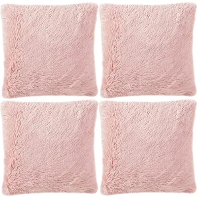 Adore 4 x Long Pile Super Soft and Cuddly Shaggy 17x17 (43x43cm) Cushion Cover, Blush Pink